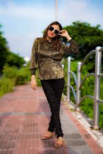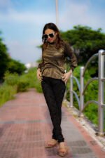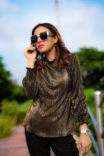 Be the first to review “Women’s Metallic Sheen Blouse – Olive Gold, Long Sleeve, Relaxed Fit” Cancel reply